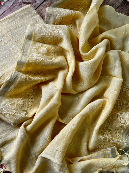 Pure Linen Hand Cutwork Embroidery Suit – Elegant and Timeless Craftsmanship